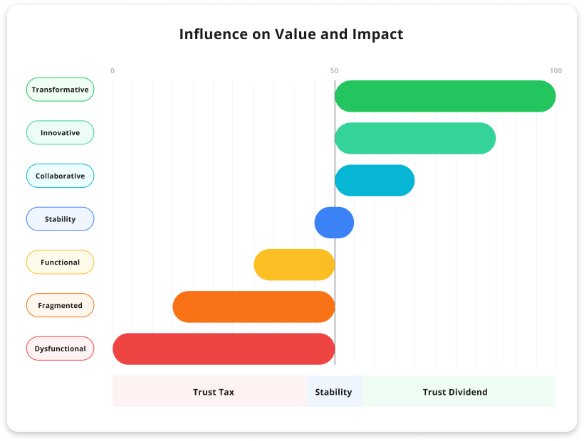 High-trust cultures unlock the full potential of people and performance, ultimately driving higher value across every dimension of the organization.